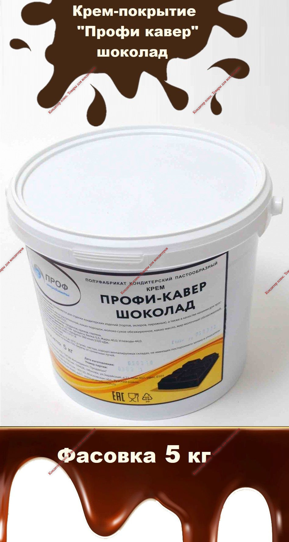 Профи-Кавер темный шоколад. Крем-паста на жировой основе для покрытия поверхности изделий.Описание: Готовый к применению ингредиент,обладает насыщенным вкусом и цветом темного шоколада. Эта высококачественная крем-паста превосходно выглядит на тортах, печенье, пирожных и других изделиях. Также может использоваться в приготовлении комбинированных кремов или в качестве прослойки и начинки.