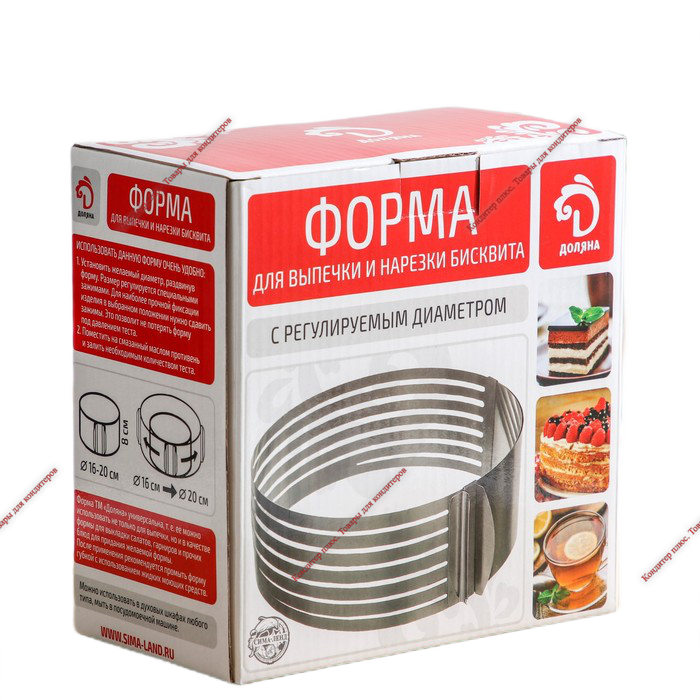 Специальная конструкция позволит вам раздвинуть форму и создавать коржи диаметром от 16 до 20 см.