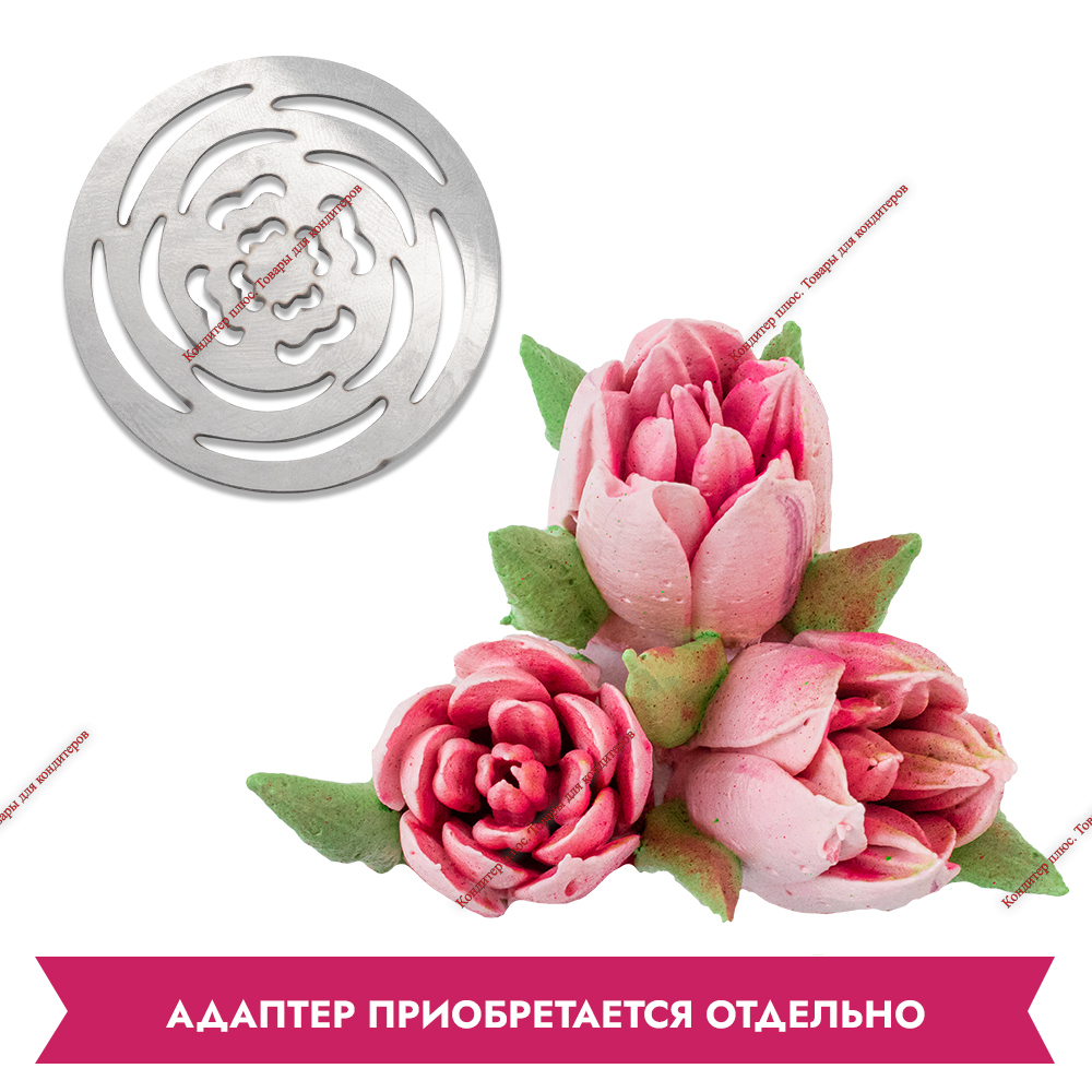 Толщина 0,8 мм.Насадка кондитерская (сменный диск) для изготовления больших цветов из зефира, белкового крема и меренги. Возможность сменить насадку в процессе работы позволяет сделать букет более разнообразным и интересным!