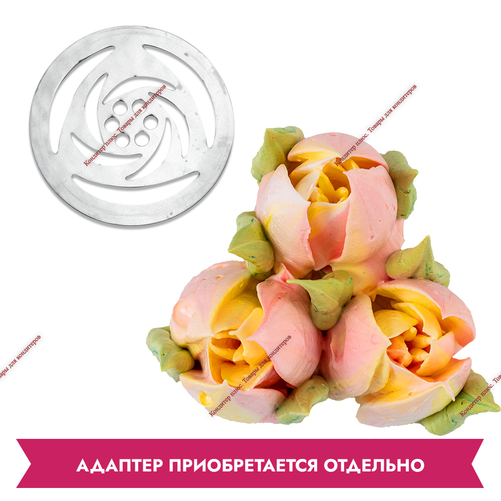 Толщина 0,8 мм.Насадка кондитерская (сменный диск) для изготовления больших цветов из зефира, белкового крема и меренги. Возможность сменить насадку в процессе работы позволяет сделать букет более разнообразным и интересным!