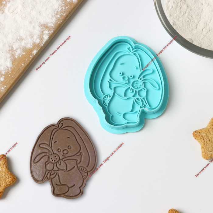 Форма для печенья «Зайка в пижаме», штамп, вырубка, цвет голубой
