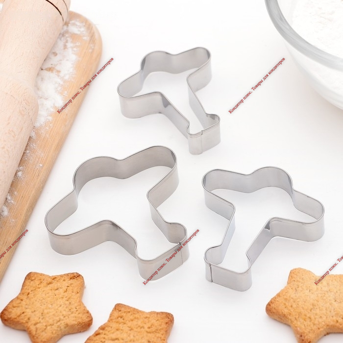 Набор форм для вырезания печенья «Самолет», 3 шт, 7×7 см, цвет хромированный