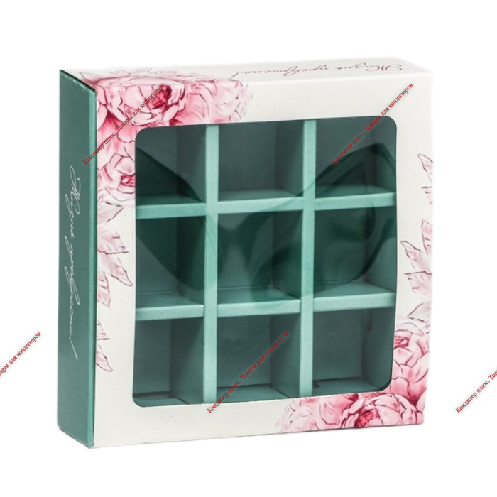 Коробка под 9 конфет с обечайкой "Жизнь прекрасна Tiffani", 13,7 х 13,7 х 3,5
