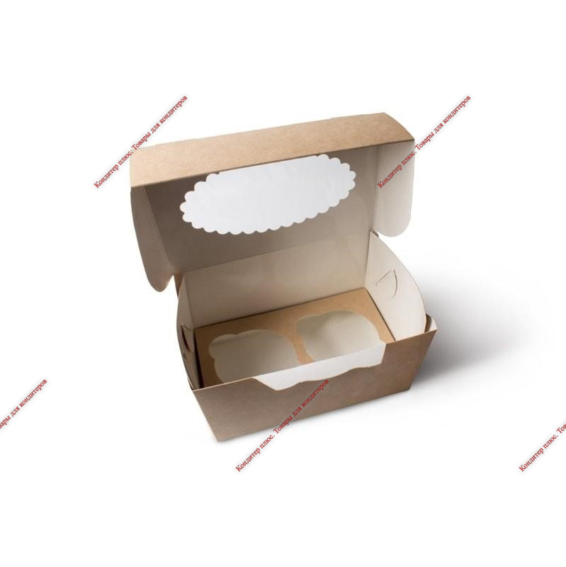 Коробка для капкейков, 16x10x10 см, на 2 капкейка, с окном