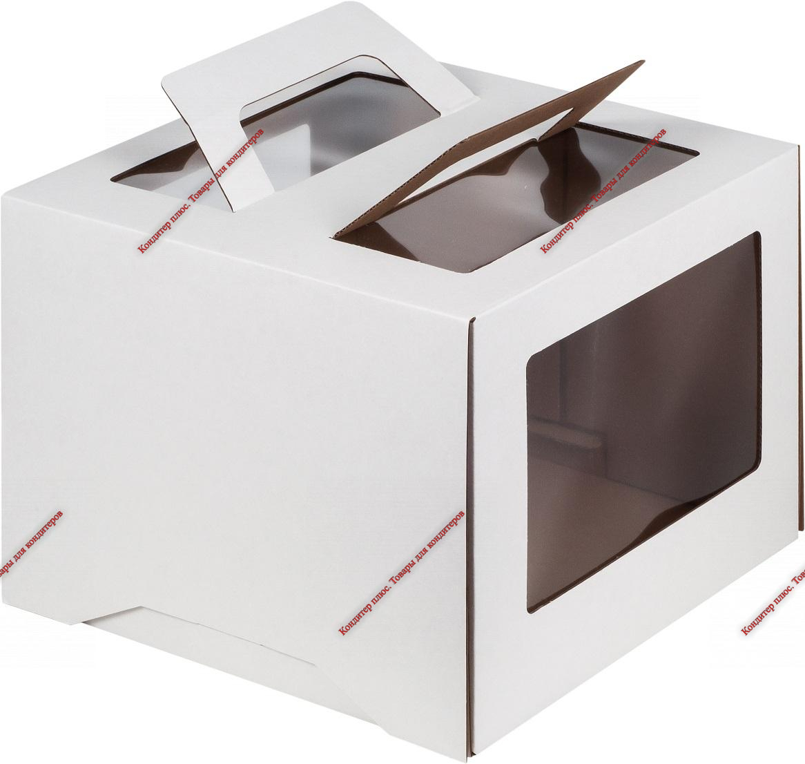 Коробка для торта 20*20*20см с окном и ручками, белая - Кондитер плюс. Товары для кондитеров