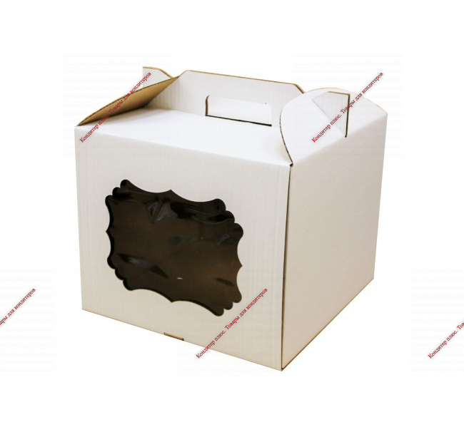 Коробка для торта, 30x30x30 см белая с ручками и окном