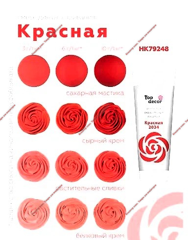 Пищевой краситель гелевый Топ Декор для кондитерских изделий 100 гр, Красная