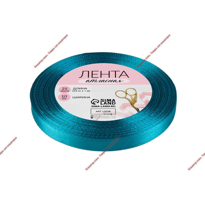 Лента атласная, 10 мм × 23 ± 1 м, цвет морская волна