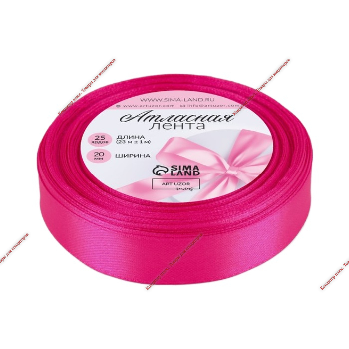 Лента атласная, 20 мм × 23 ± 1 м, цвет ярко-розовый №89