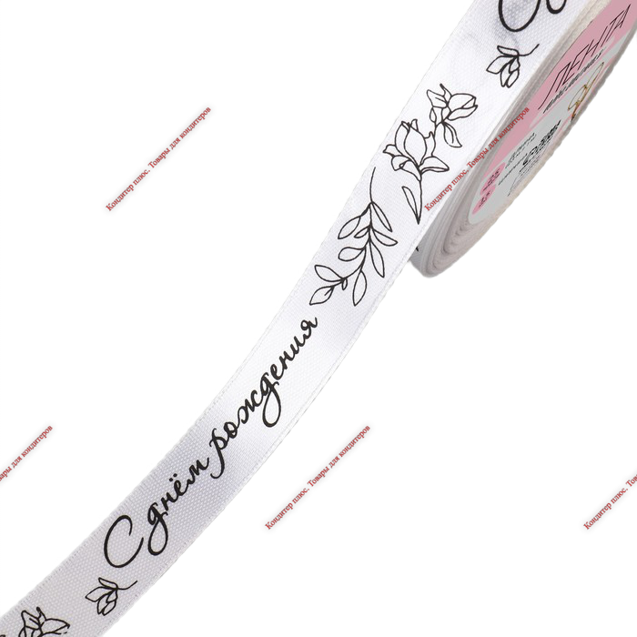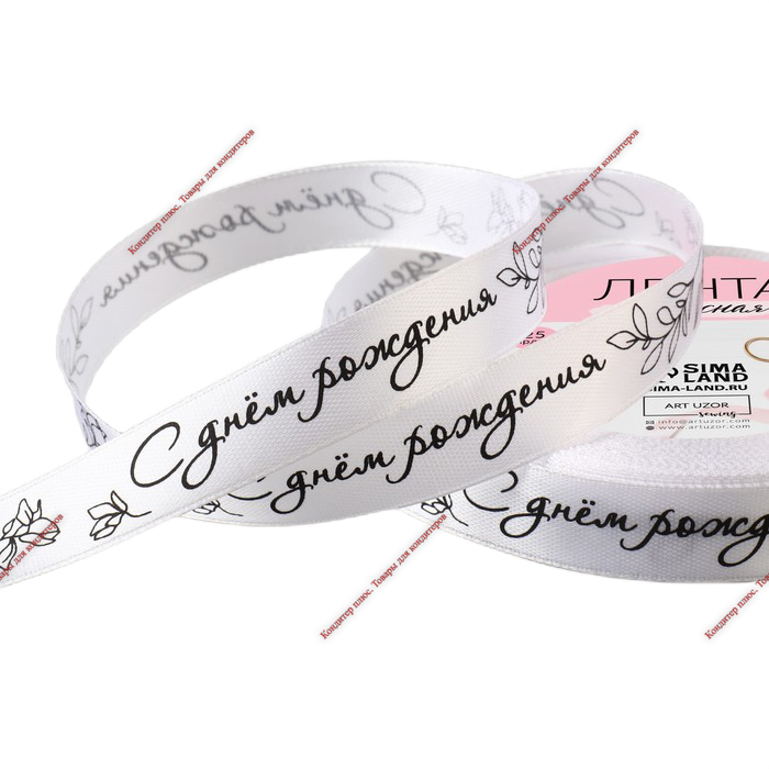 Лента атласная «С днём рождения», 15 мм × 23 ± 1 м, цвет белый/чёрный