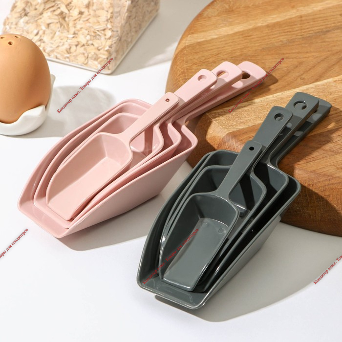 Набор совков «Сатиш», 4 шт, 11×3,6 см, 13,5×4,7 см, 16,5×5,7 см, 19,5×6,8 см, цвет МИКС