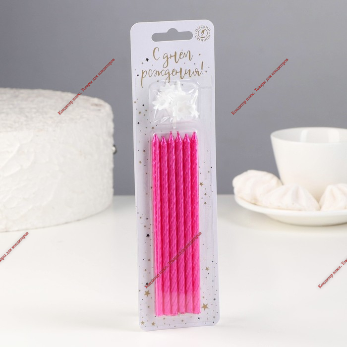 Свечи для торта "Классические" с подставкой, 13 см, 6 шт, розовые