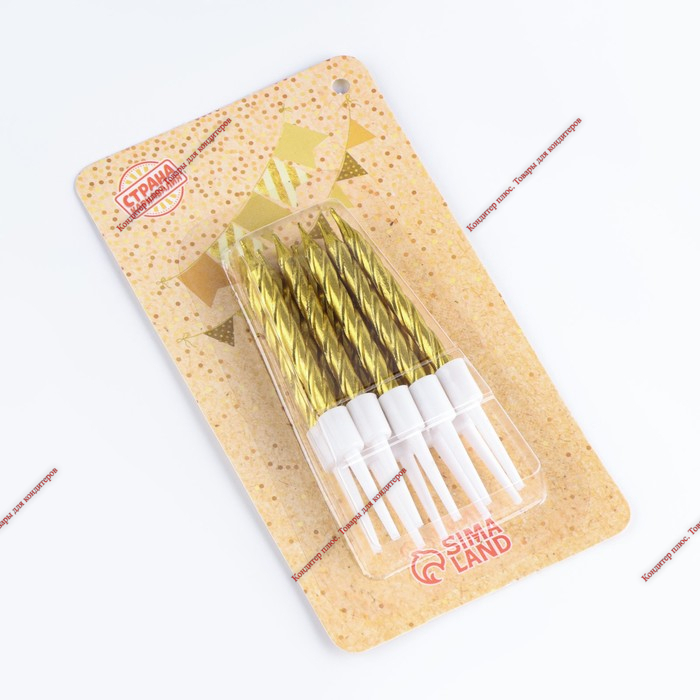 Свечи в торт "Спираль", 10 шт, средние, 7 см, золотой металлик