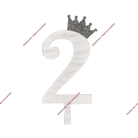 Топпер акриловый «Цифра 2» (10,5 см, серебряный)