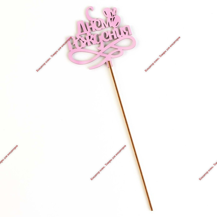 Топпер деревянный "С Днём Рождения" сиреневый 13х11 см