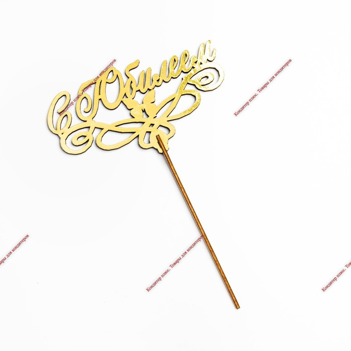 Топпер деревянный "С Юбилеем" золотой 14,3х8 см