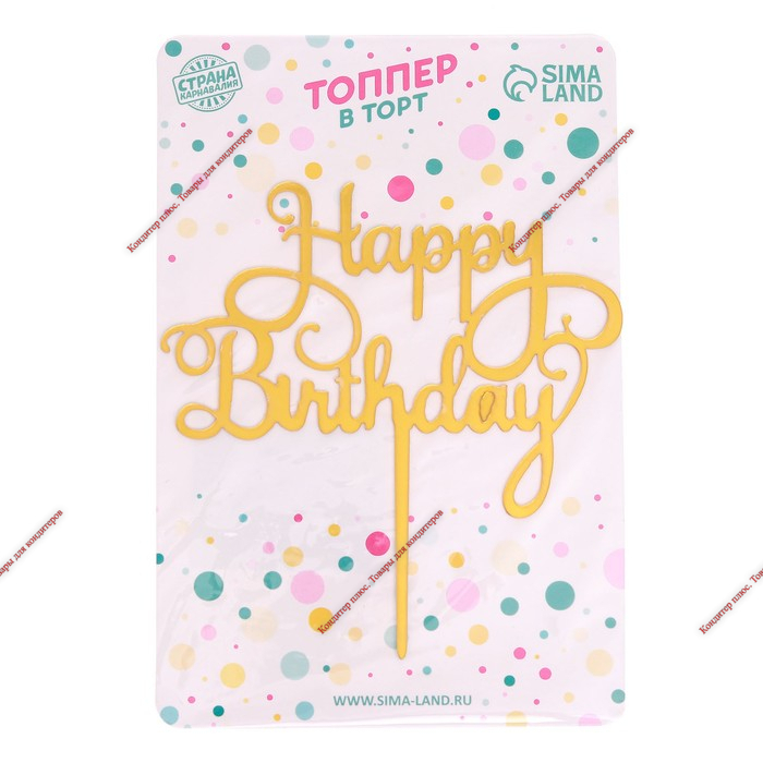 Топпер «С днём рождения», цвет золотой 12*12 см