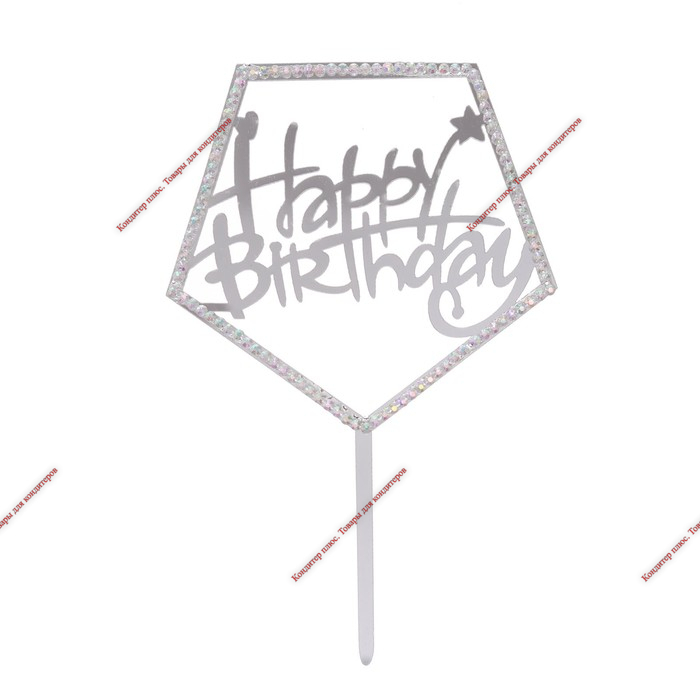 Топпер «С днём рождения», со стразами, цвет серебряный